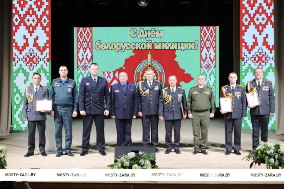 Глава района вручил заслуженные награды лучшим представителям правоохранительных органов. За многолетнюю безупречную службу и личный вклад в обеспечение охраны общественного порядка Почётной грамоты Мостовского райисполкома удостоен участковый инспектор милиции Геннадий Чубрик, Благодарность председателя райисполкома объявлена старшему инспектору группы информационного обеспечения Веронике Борисевич, милиционеру взвода милиции районного отделения Департамента охраны Андрею Чернышёву, электромонтёру охранно-пожарной сигнализации районного отделения охраны Евгению Демещику.