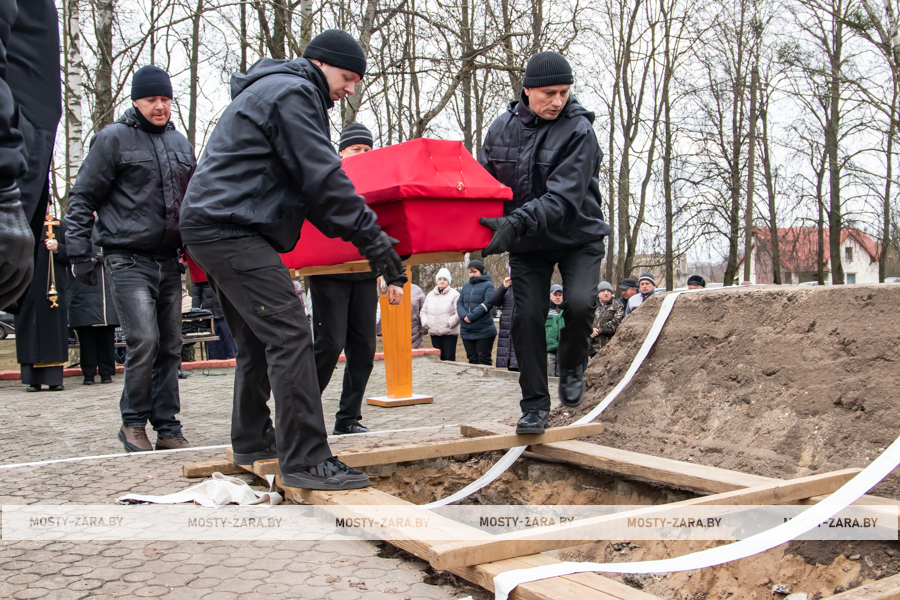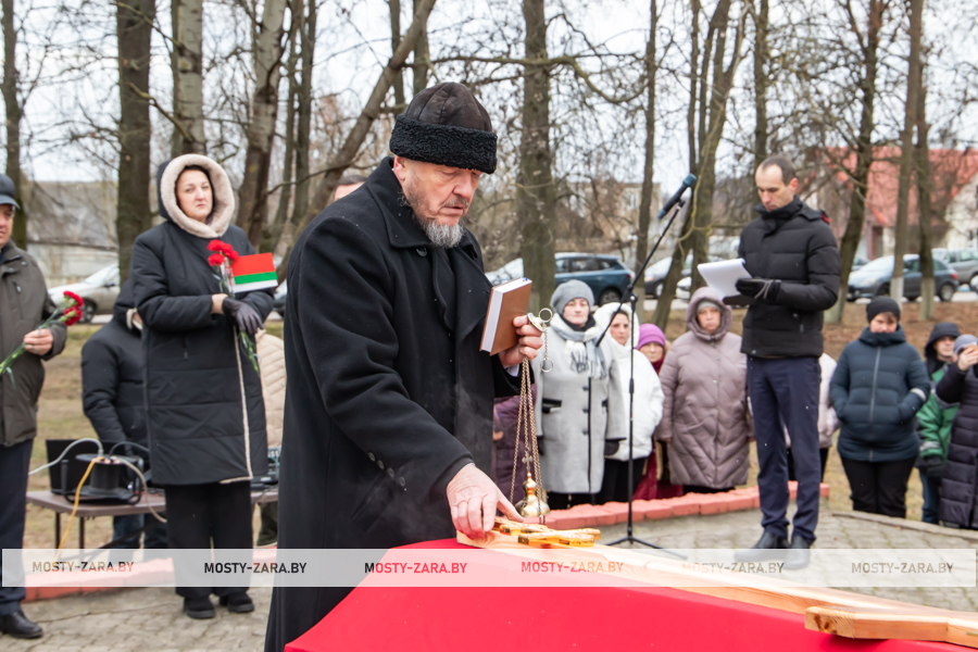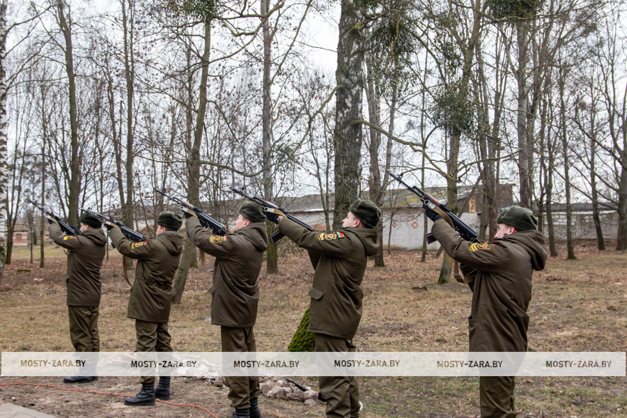 В завершение церемонии захоронения настоятель храма «Всех скорбящих Радость г. Мосты» протоиерей Владимир Саверченко провёл чин освящения воинского захоронения, а салютный взвод 6-й отдельной механизированной бригады сделал пять залпов в честь подвига нашедших вечный покой советских солдат.