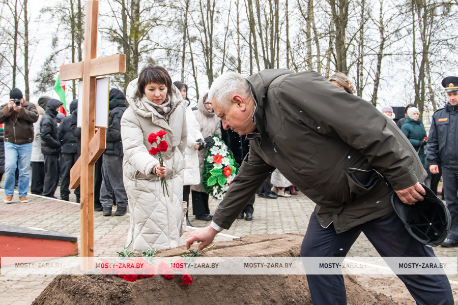 На церемонии перезахоронения останков советских воинов присутствовали председатель районного Совета депутатов Валерий Табала, заместитель председателя райисполкома Марина Давыдик, прокурор Мостовского района Игорь Якимович, военный комиссар Сергей Ларченко, а также председатели сельисполкомов района, представители организаций и учреждений Мостовщины.