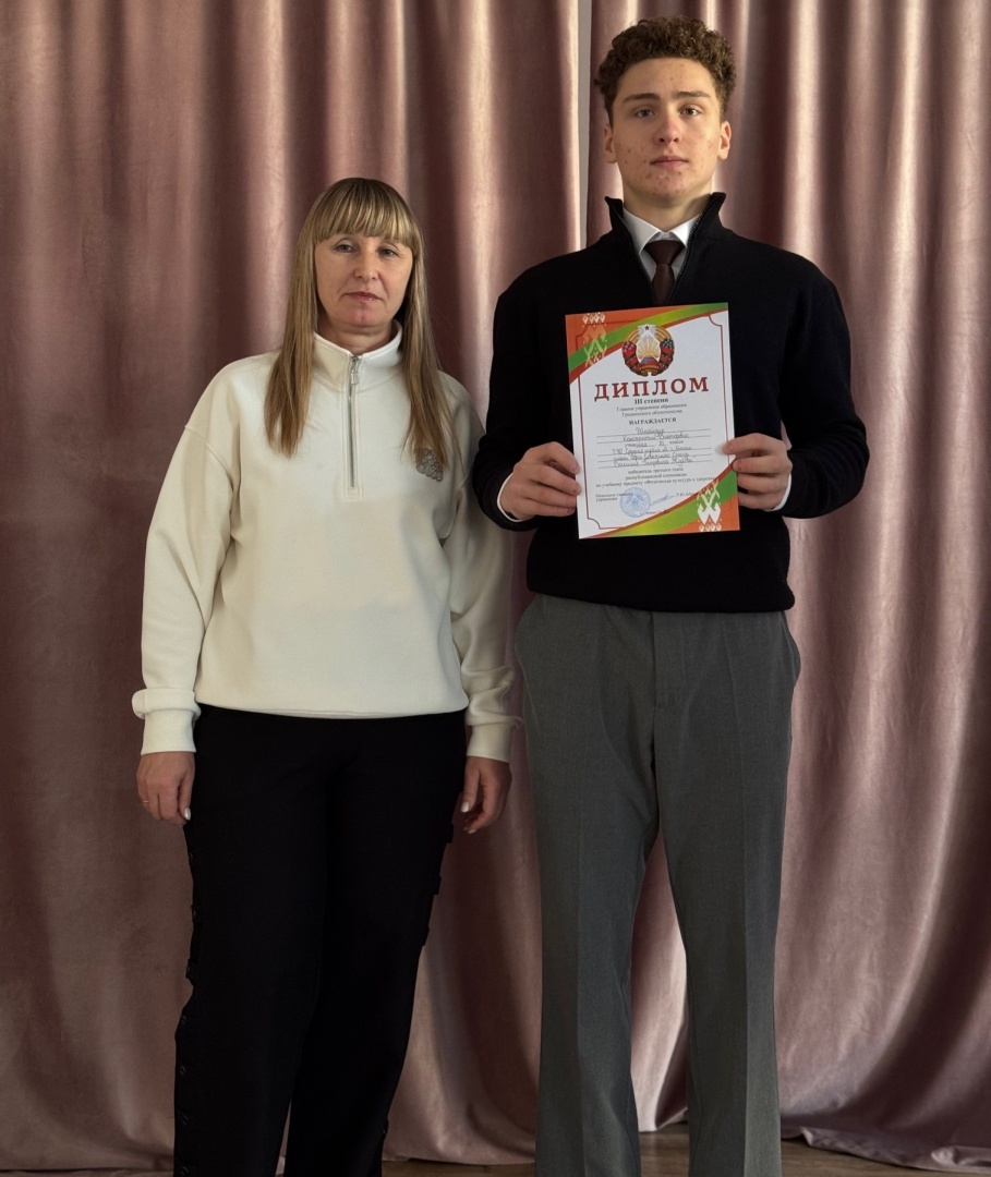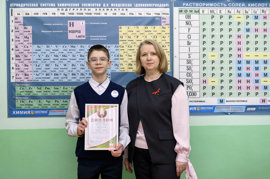 Обладателем диплома такого же достоинства, только по химии, второй год является одиннадцатиклассник средней школы №5 г. Мосты имени В. Л. Володося Кирилл Масюк. Как нам рассказали в школе, этот успех является результатом целенаправленного и усердного труда учащегося под руководством учителя химии Светланы Петровны Терешко.