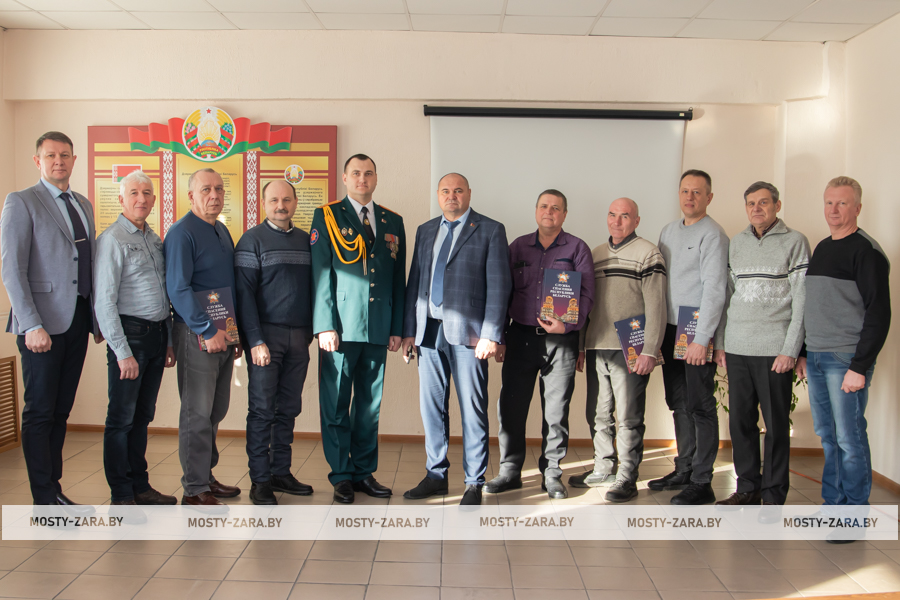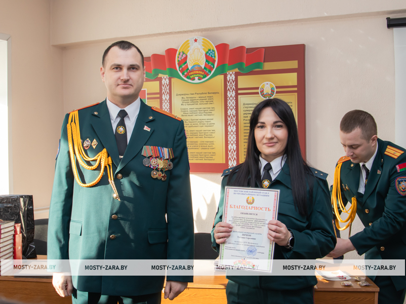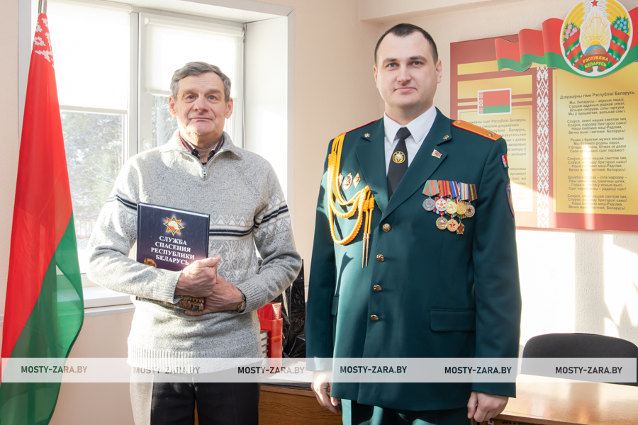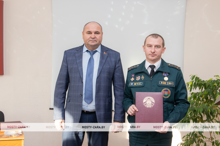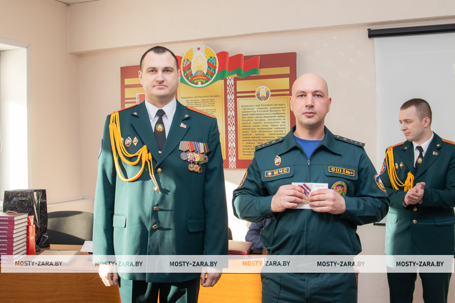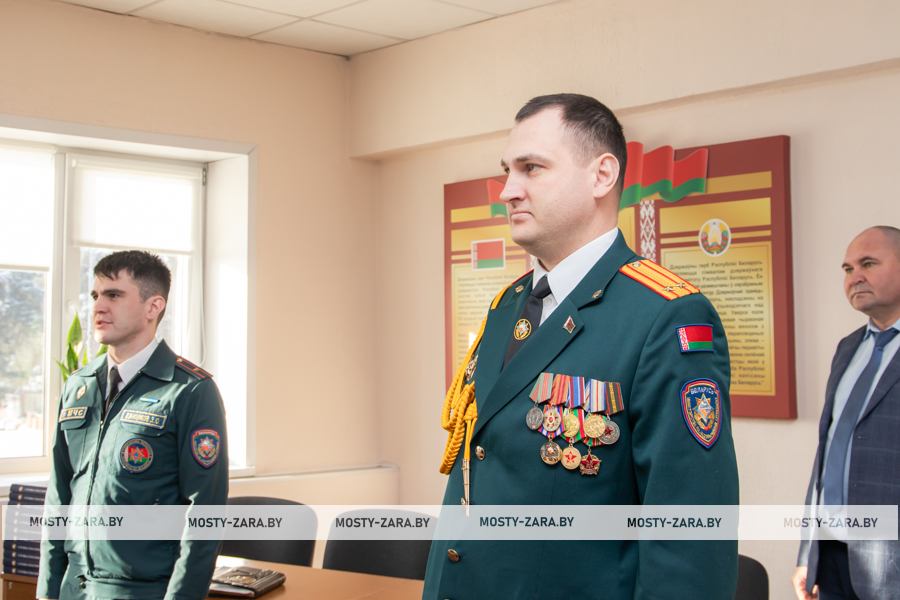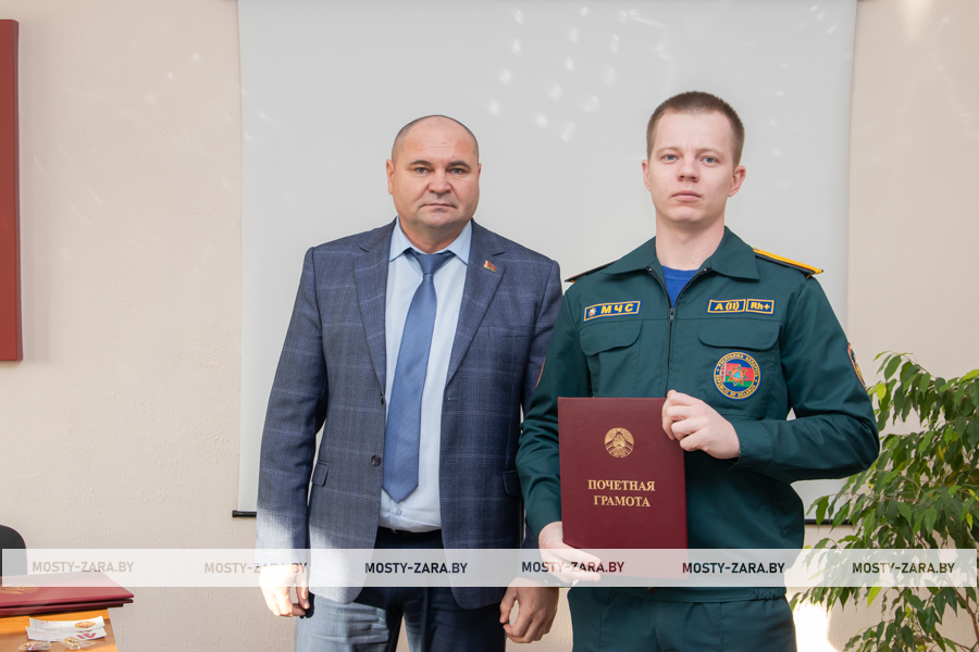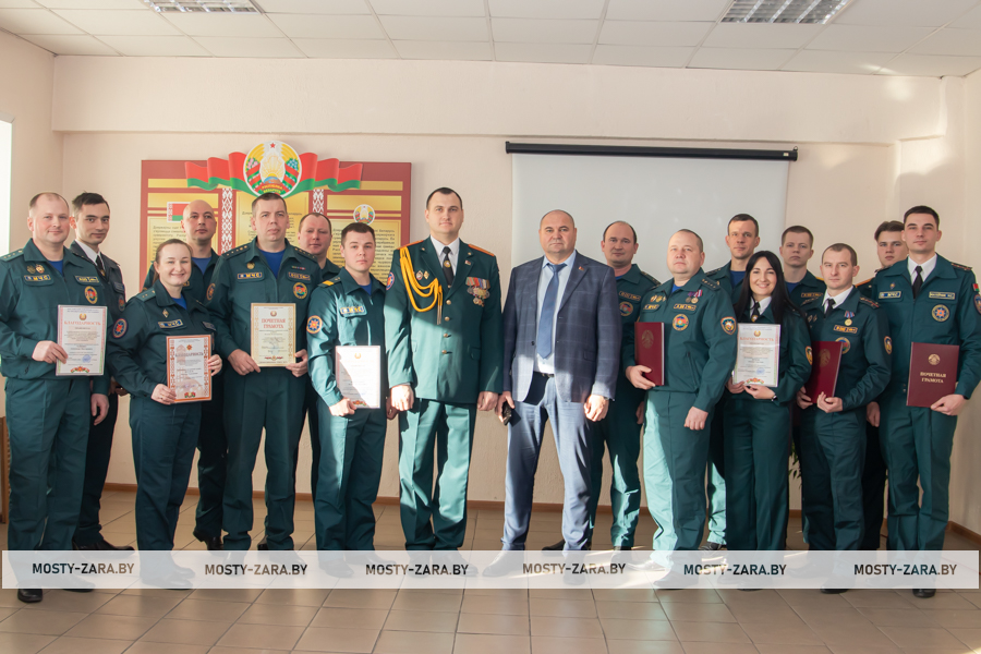 Благодарность начальник Мостовского РОЧС объявили старшему прапорщику внутренней службы Александру Чайкину, прапорщику внутренней службы Татьяне Янчене, старшему сержанту внутренней службы Владиславу Войцеховичу, сержанту внутренней службы Дмитрию Федутику.