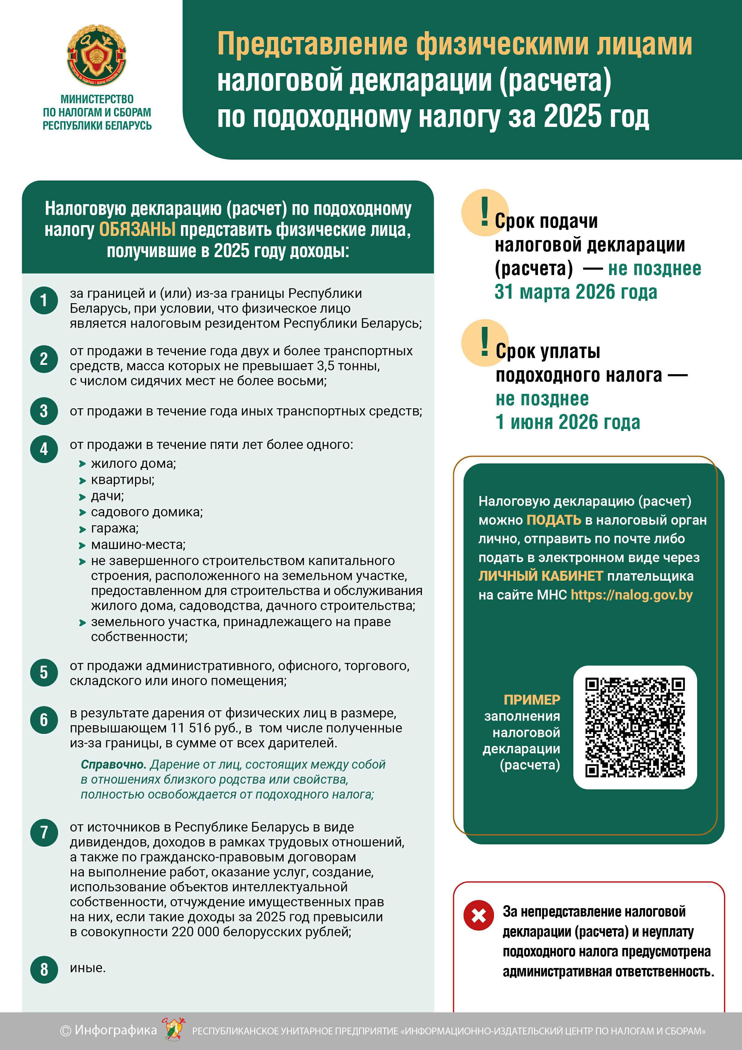 Министерство по налогам и сборам проводит кампании по информированию физических лиц, имеющих обязанность по предоставлению налоговой декларации (расчета) по подоходному налогу за 2025 год