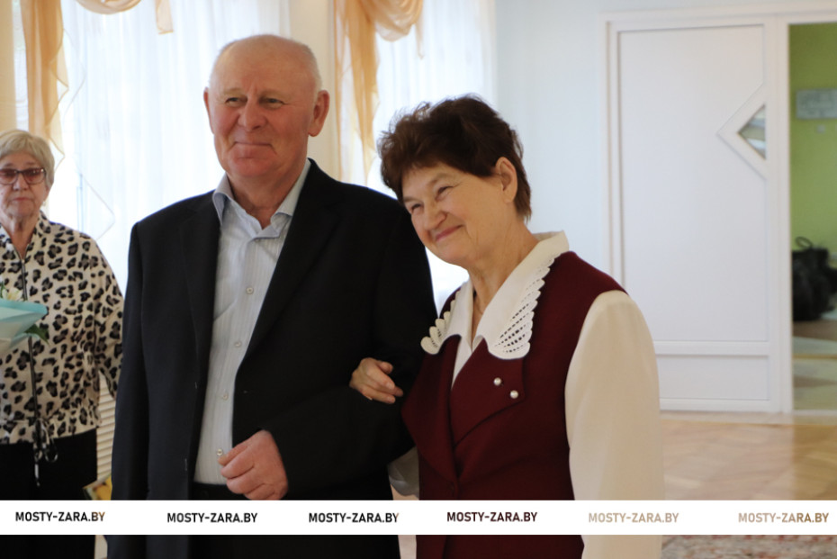 Как и полагается молодожёнам, даже «золотым», они встали вместе на ручник, символизирующий долгую супружескую жизнь, испили напиток любви, зажгли огонь домашнего очага и станцевали семейный танец. А «горько» им кричали дети, внуки и родные! По традиции имена юбиляров занесены в Почётную книгу отдела загса Мостовского райисполкома, а им на память о торжественном моменте вручены памятная медаль и «золотое» свидетельство, подтверждающее их почётный и уважаемый статус. В планах на дальнейшую жизнь – вместе встретить бриллиантовую и королевскую свадьбы!
