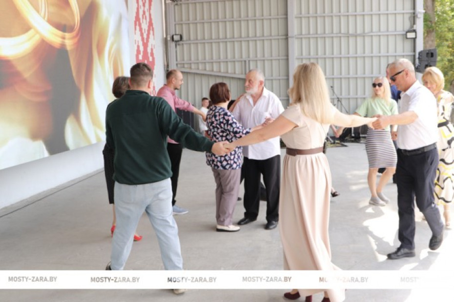 Свой золотой юбилей мостовчане скрепили подписями, а также поздравили друг друга золотым поцелуем и закружились в свадебном вальсе.